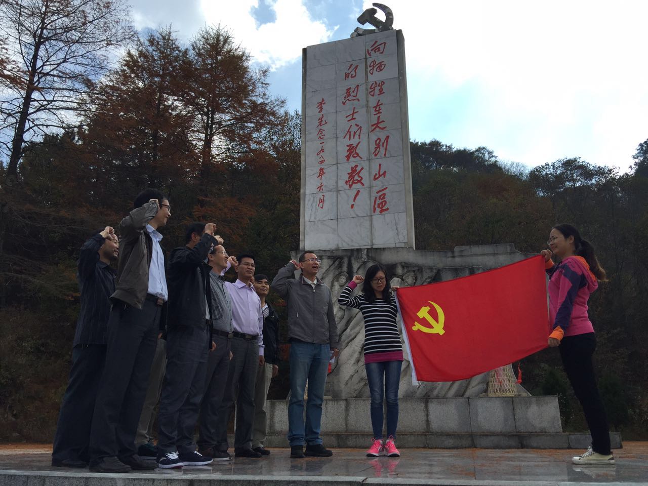 2017年上半年,在皖南泾县,党员们通过参观云岭新四军军部旧址,了解了新四军指战员英勇抗敌的斗争历史,深刻认识了革命前辈的光辉业绩。在“皖南事变死难烈士永垂不朽”纪念碑下,全体党员举起右手、握紧拳头,面对党旗,再次重温了入党誓词。泾县之行让党员接受了一次生动的爱国主义和革命传统教育,使大家心灵受到了洗礼、思想受到了净化。
