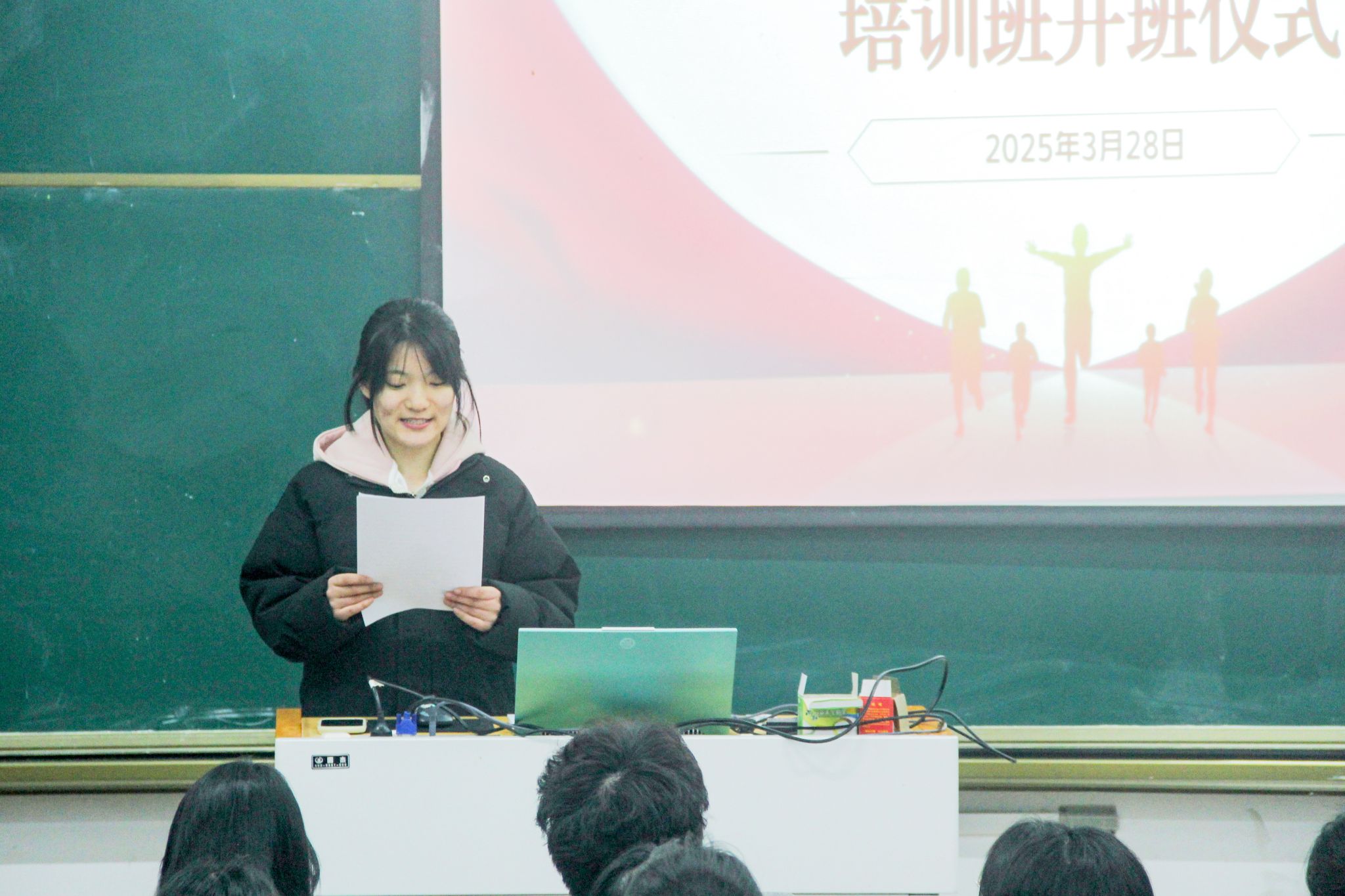 学员代表2024级中国语言文学类专业(4)班金雪发言。她结合自身经历,表达了积极向党组织靠拢和坚定加入中国共产党的决心。她号召全体学员,坚定理想信念,锚定奋斗目标;恪守历史使命,强化责任担当;练就过硬本领,践行为民宗旨,以实际行动践行“请党放心,强国有我”的青春誓言。