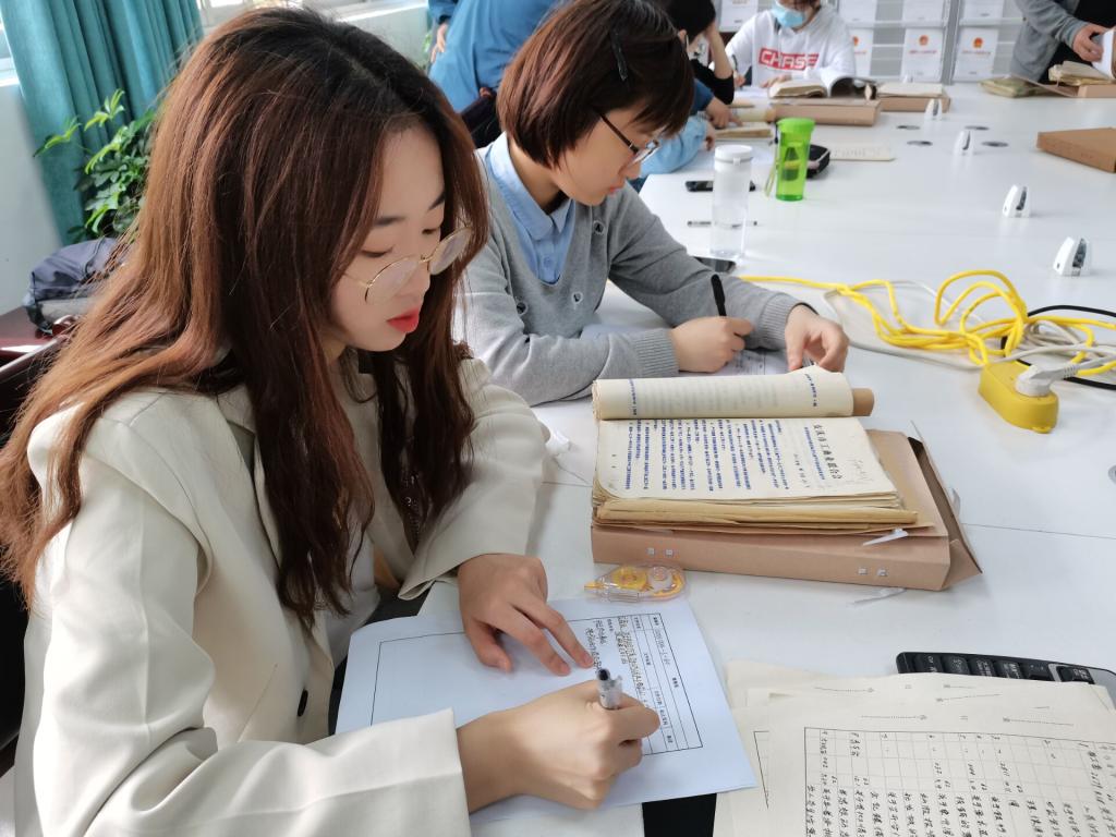 案卷号、案卷名、档案内容……学生们两两一组,仔细根据档案目录进行查找、在确认无误后才开始誊抄。历史学专业2019(1)班的霍嘉琪是第二批前来安庆市档案馆的学生,根据这次“建国初期三大改造”的学习主题,她选择从工商业的方面切入,抄录了“安庆胡玉美蚕豆酱的调查”的相关信息,并计划再深入了解中国共产党在全国范围内开展社会主义三大改造的详细情况。
