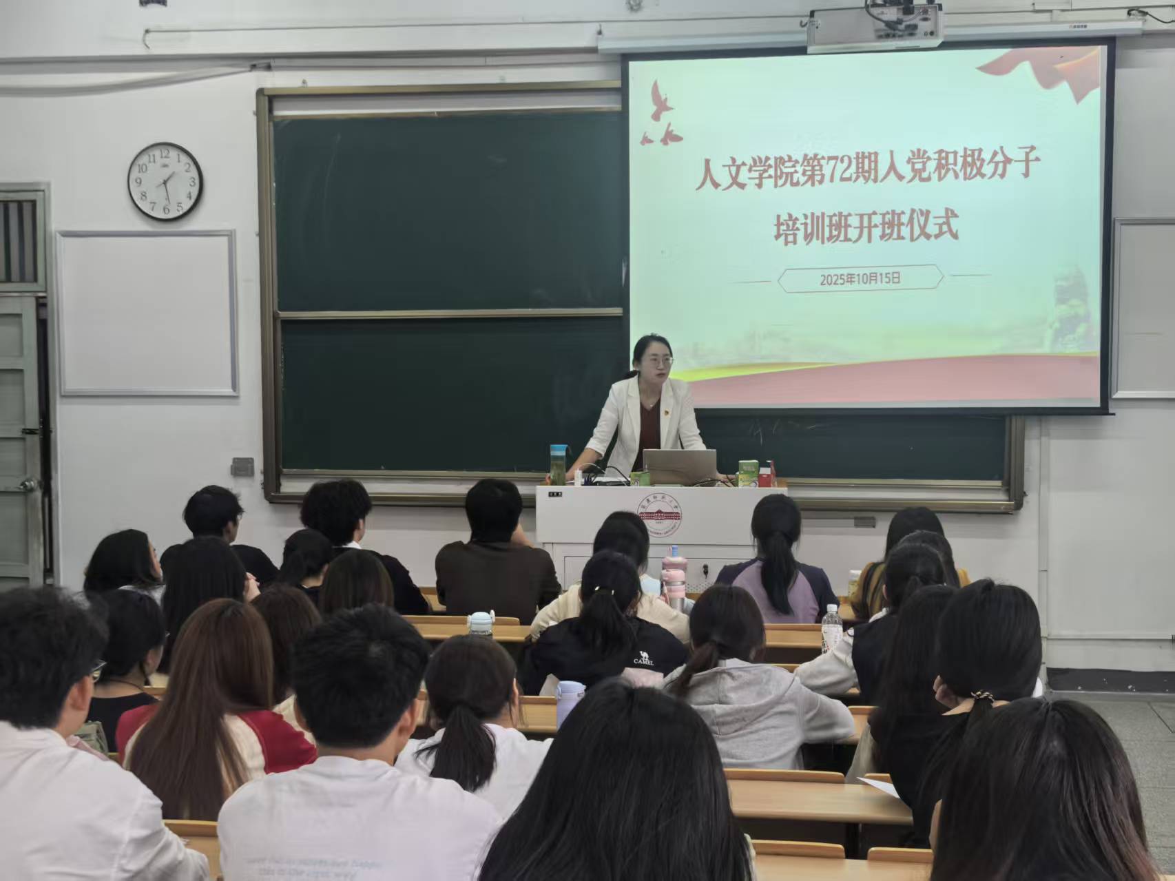 会上,培训班负责人宣读了《伟德国际1949始于英国分党校第72期入党积极分子培训班方案》,介绍了本次培训的课程内容、学习重点、纪律要求与考核办法。学员代表,2024级汉语言文学文典班陈姝馨作表态发言,她结合自身参与学生工作、“返家乡”“三下乡”等实践经历,表达了将以党员标准严格要求自己,力争早日成为合格的社会主义建设者和接班人。