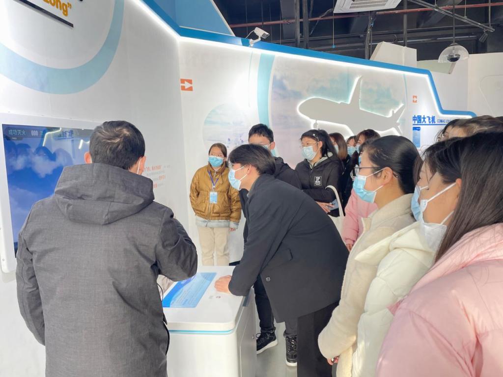 接着,在科技馆讲解员的带领下,同学们走进了“创新之路”,讲解员给大家讲述了中国大飞机C919、鲲龙-600、北斗导航系统、蛟龙号、长征系列运载火箭等科普知识,通过聆听讲解、动手操作,同学们了解了我国自主研发的科技成果相关知识和原理,深刻领悟到科技创新在党和国家发展全局中的重要地位。