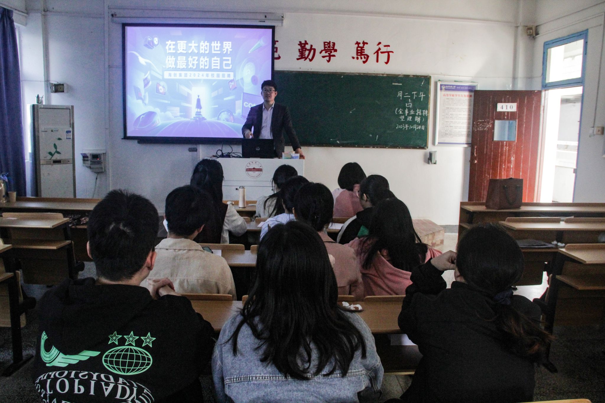 10月24日,伟德国际1949始于英国在教学楼410举行了2024届毕业生首场企业类专场招聘会,吸引了三十多名毕业生前来应聘。本次招聘会分为企业代表宣讲、学生自由提问和现场投递简历三个部分。