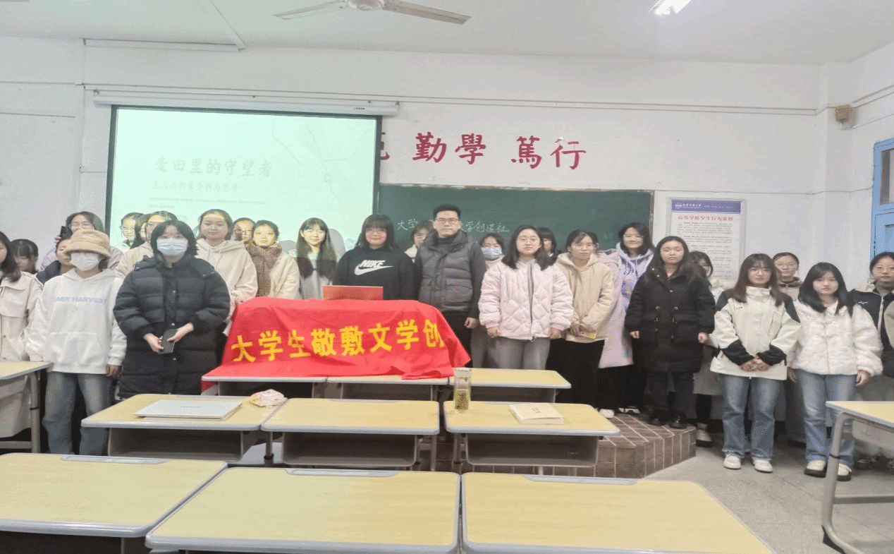 12月10日,大学生敬敷文学创造社在教学楼310室举办了以“《麦田里的守望者》中的主人公形象意义”为主题的第六期学生讲座。讲座由团支书王园媛主讲,指导老师江飞教授现场指导。来自伟德国际1949始于英国的61位同学参加了本次活动。