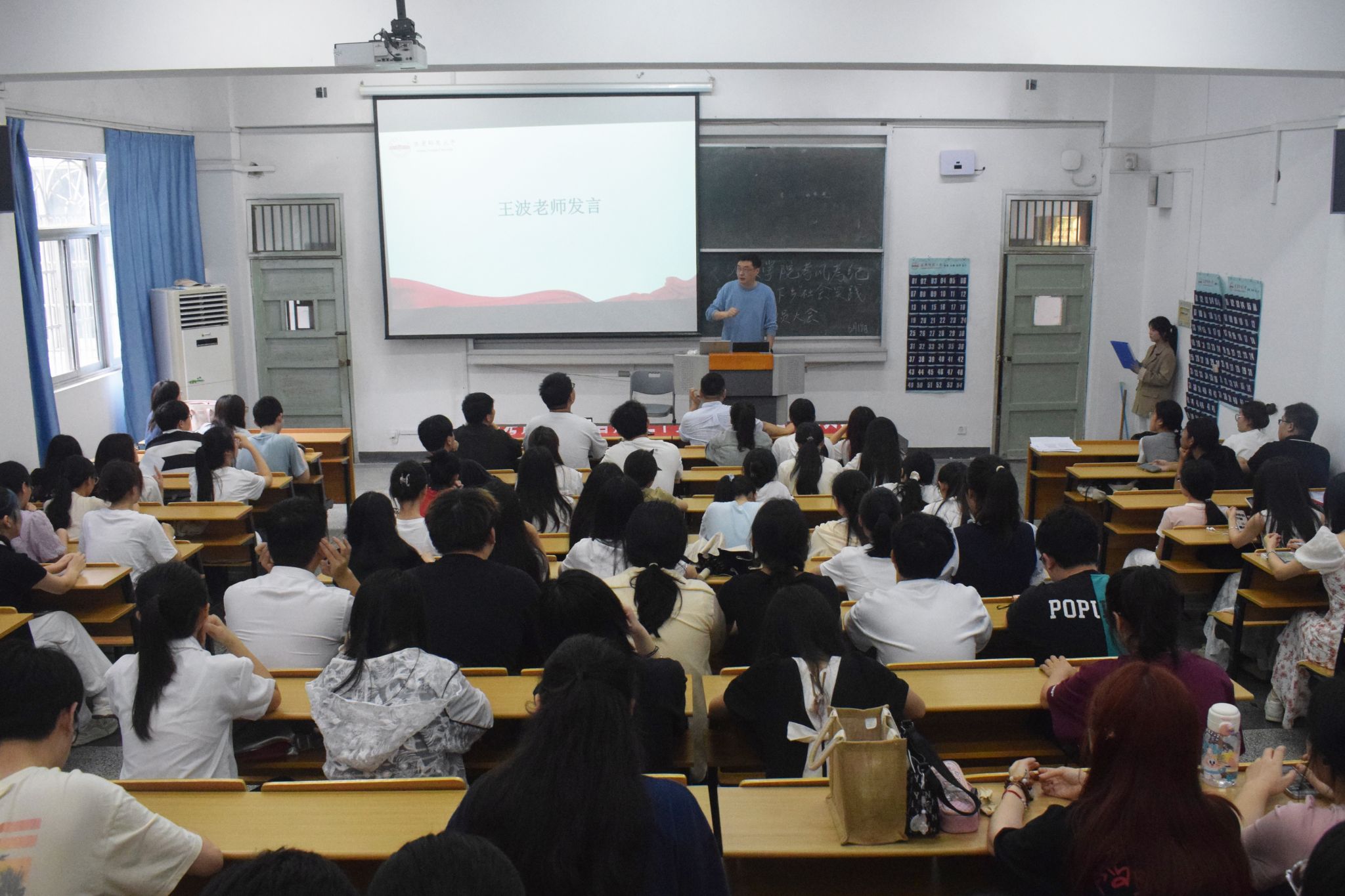 王波表示,大家作为师范专业的学生,应当树立良好的纪律意识和规则意识,各班班委要承担其自身责任,在每场考试前及时做好清场和检查工作,督促学生诚信考试,不抱侥幸心理,并再三强调考试违纪处罚力度。他希望学生们为即将到来的暑期做好合理的安排,鼓励大家多多参与暑期实践活动,根据自己所擅长的领域,将专业知识运用到基层实践中,在社会实践中寻求研究发展方向,把握好自我锻炼和接触社会的机会。