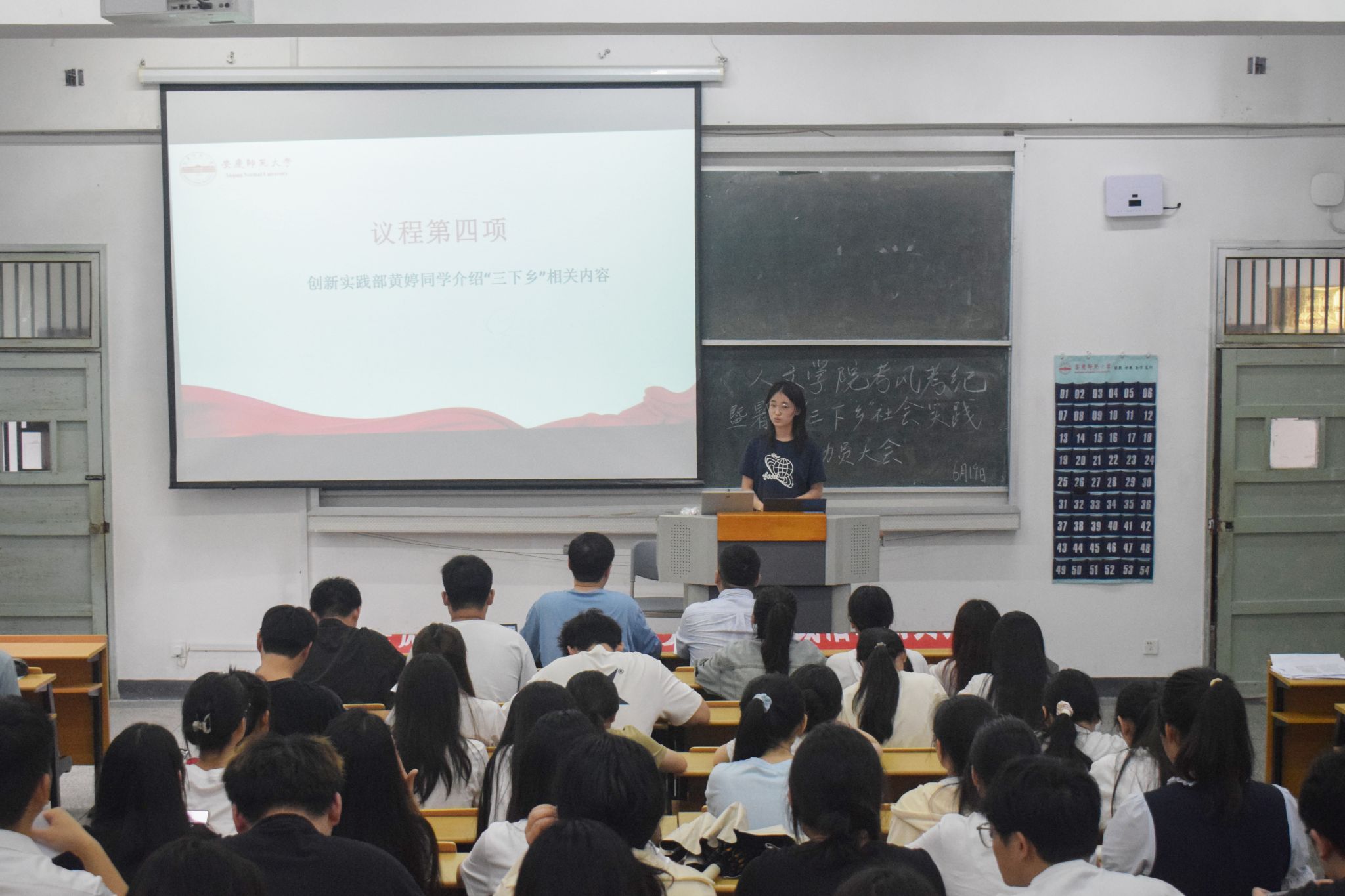 创新实践部负责人黄婷从组织形式、活动内容、活动进程和“三下乡”调研报告内容四个方面,让参与暑期“三下乡”社会实践活动的学生能够更加全面地了解该活动的详情,为后续的组队工作和实践调研活动的开展奠定基础。