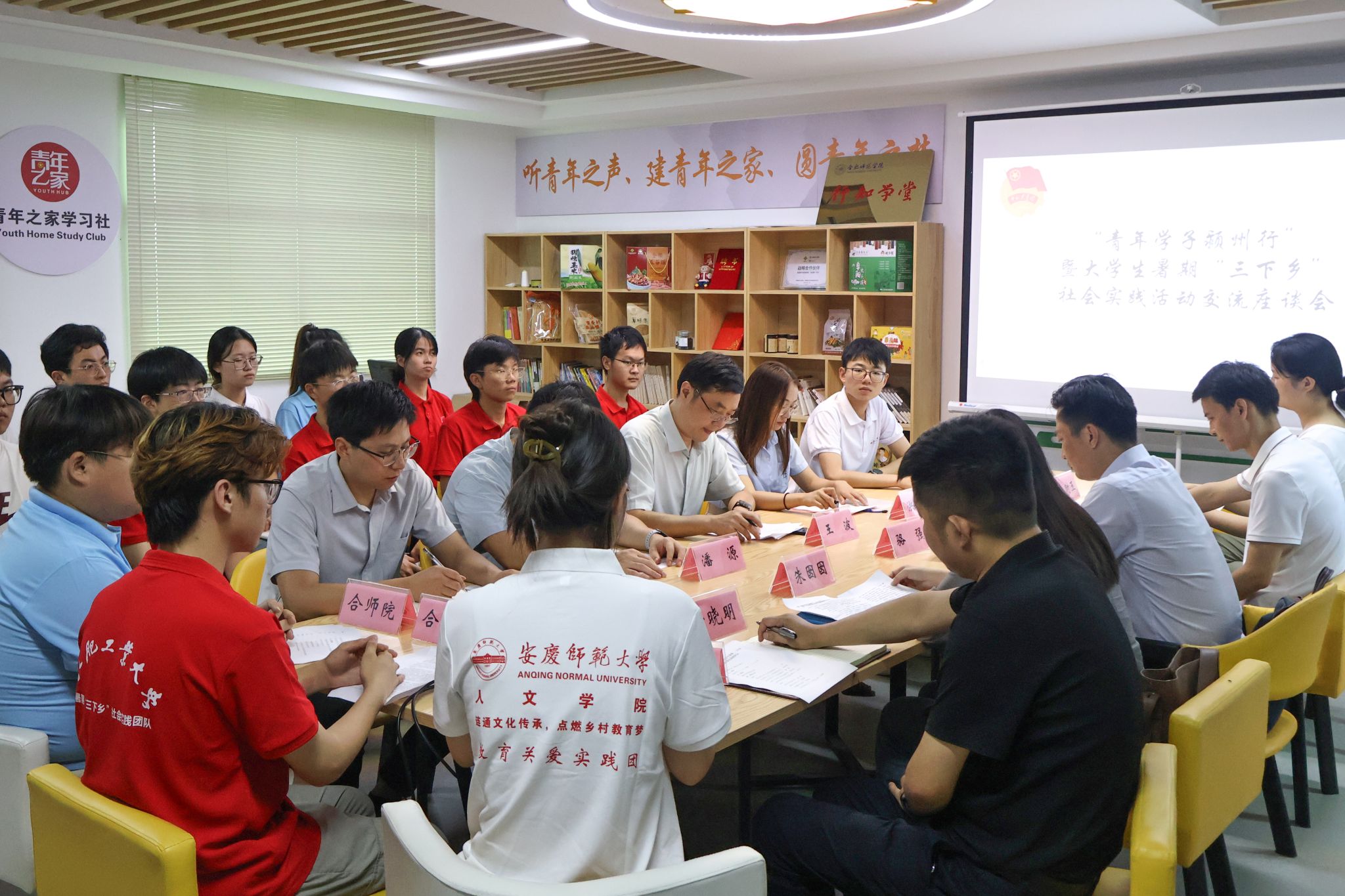 会上,朱囡囡介绍了“青年学子颍州行”活动开展情况,学生代表潘晨宇、仇瑾等汇报了团队实践情况和成长收获。