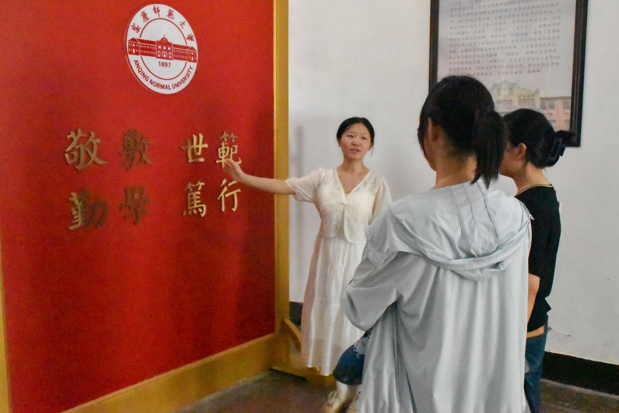 “我们学校始建于1897年新中国成立前的50余年,先后历经敬敷书院、安徽大学堂、安徽高等学堂、省立安徽大学、国立安徽大学等办学阶段……”红楼内,新生和家长们跟随着来自伟德国际1949始于英国青马班志愿者的脚步,聆听红楼与学校的深厚底蕴。