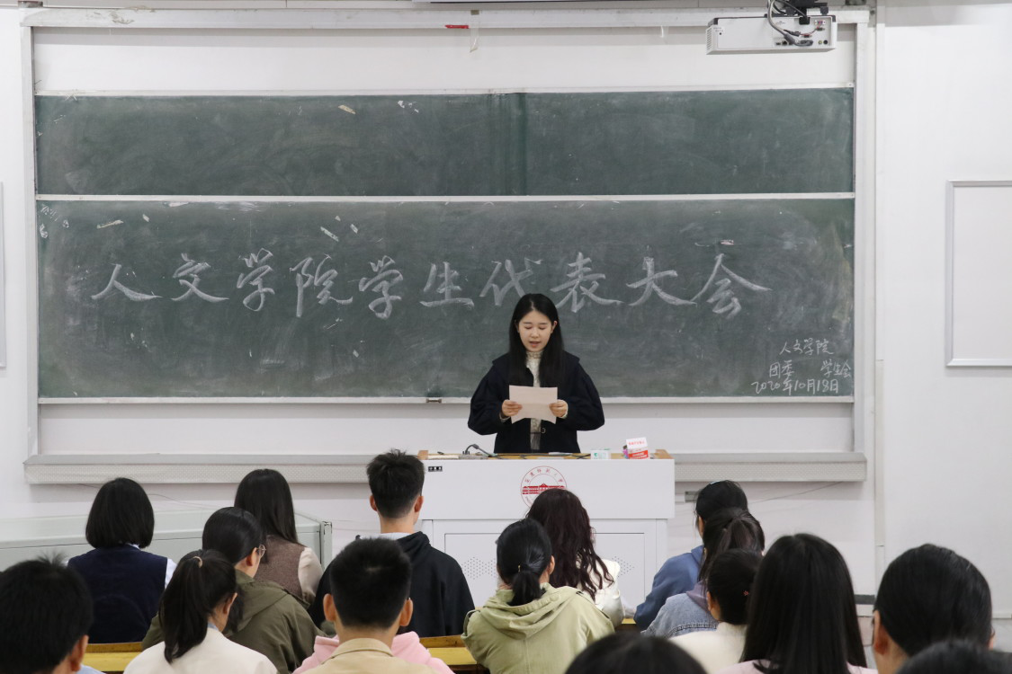 学生会主席团成员左倩灵作代表讲话。她首先介绍了学代会的具体内涵、职能和工作内容,并介绍了本次学代会的选举流程。对于学生代表,她提出了两点建议:一是学生骨干要思想过硬、素质过硬,不断加强自律意识和责任意识,严格要求自己,切实发挥示范引领作用;二是在学习、生活、工作及其他社会活动中,学生代表应当起模范作用并做出突出成绩。