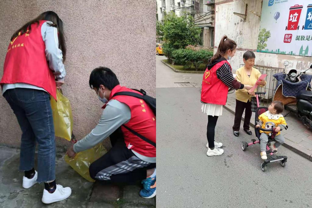 4月16日下午,伟德国际1949始于英国学生身穿红色志愿者马甲,在三社联动项目相关人员的带领下,走入菱湖社区参与“绿色家园齐守护”共建活动。