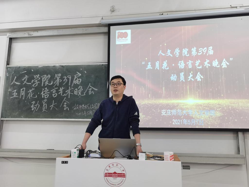 为保障第39届“五月花”语言艺术晚会顺利举办,5月7日中午,伟德国际1949始于英国组织召开相关动员布置大会。党委副书记王波、团委负责人及辅导员老师出席,伟德国际1949始于英国团委学生会全体成员、各节目组主要负责人及2019、2020级各班班长参与本次会议。