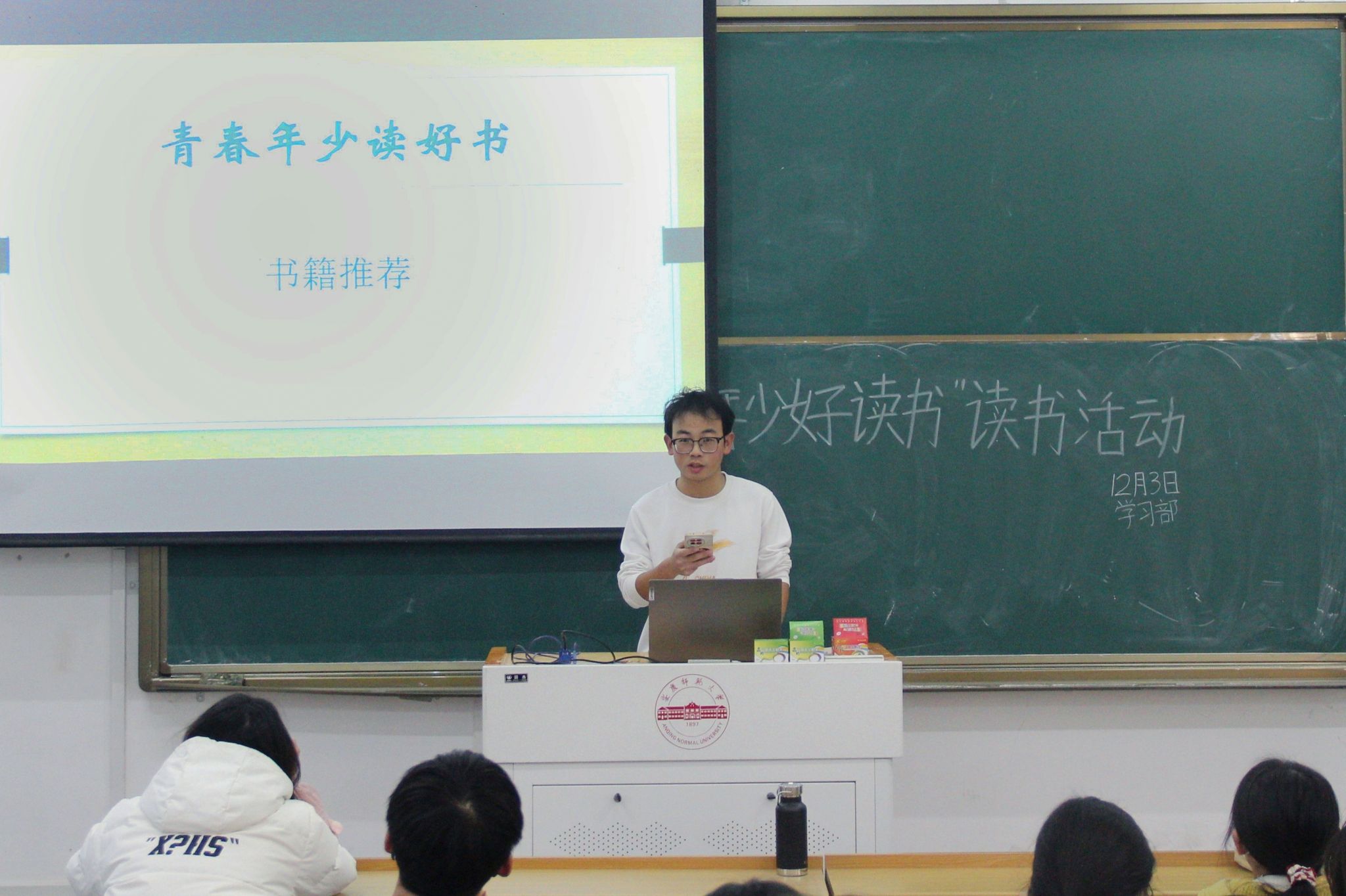 12月6日,伟德国际1949始于英国团委、学生会于教学楼214教室举办“青春年少好读书”主题活动,通过学生领读、经典诵读、心得分享等形式,让同学们在交流中碰撞思想、在品读中感悟真谛。