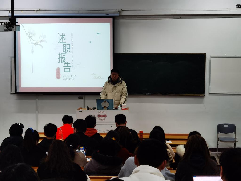 根据工作安排,2020、2021级本科生和研究生团支部书记以PPT的形式进行现场述职。各支部围绕组织建设、团员管理、活动开展、作用发挥等方面工作的情况与成效、存在的问题和不足以及2022年的工作思路和计划开展汇报。期间刘旭婷老师对现场述职的支部书记进行逐一点评,并提出了切实可行的改进意见。刘旭婷充分肯定了各团支部一年来的努力和取得的成绩,她要求各团支部书记以“凝聚青年、服务大局、当好桥梁、团要管团”为己任,创新性打造“一支部一特色”品牌活动。