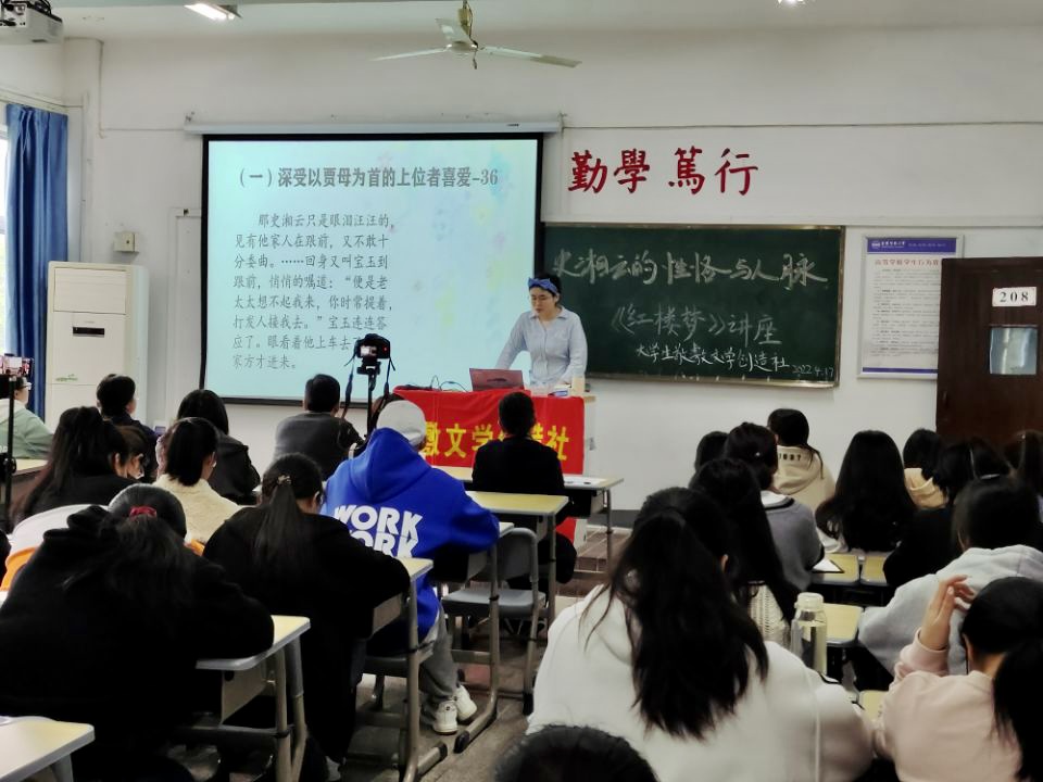 “迄今为止,我们已经举办过六期与《红楼梦》相关的专题讲座了,以前的‘刘姥姥进大观园’‘海棠诗社’等专题的反响都很好。”敬敷文学创造社社长,汉语言文学专业2020(2)班的王廷慧介绍,“如果同学们还愿意了解《红楼梦》及其他优秀文学作品,敬敷文学创造社也会尽力创造条件,举办更多类似讲座”。