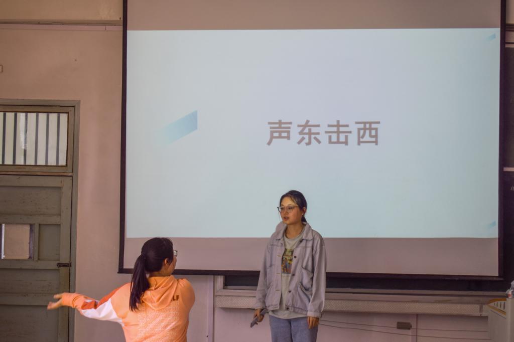 “哎呀,就是一推开,然后看见什么?”“开门见山!”……4月23日下午,“你画我猜”活动在教学楼315教室举行。本场游戏共有17组学生参与,每组比赛时间为1分30秒,涉及近300个成语。加时赛后,最终选出一等奖一组,二等奖两组,三等奖三组,并对应奖以帆布包、日历、胸针和便利贴。