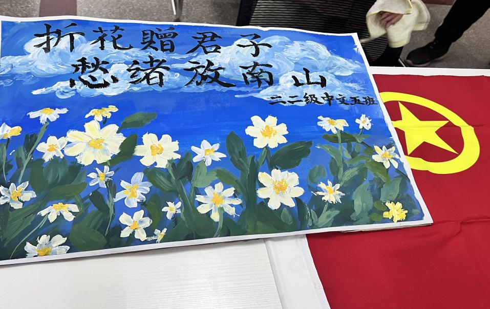11月19日,伟德国际1949始于英国2022级中国语言文学类五班于“四成”服务大厅开展了“折花赠君子 愁绪放南山”心理健康教育活动,用写下烦恼赠送花束的新颖形式,获得了学生们的一致好评。