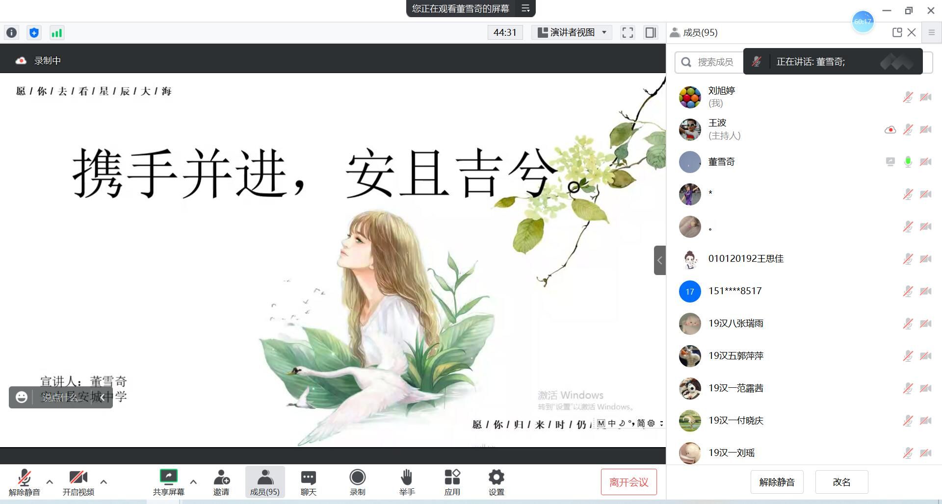 董雪奇以“携手并进,安且吉兮”为题,结合当下浙江安吉进校园的招考,从考前准备和面试授课两方面提供了建议,以自己的备考时间安排表为例,提醒同学们及时关注、梳理教师招考的相关信息。同时她还分享了自己备考时的心路历程,以此鼓励大家调整好状态,坚定信心、从容应考!
