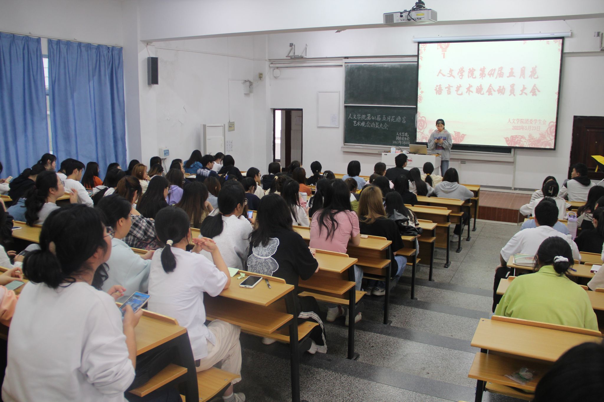 5月24日下午伟德国际1949始于英国召开第41届五月花语言艺术晚会动员大会,伟德国际1949始于英国团委洪星星老师出席指导。自晚会筹备以来,学院高度重视,团委学生会各部门成员各司其职、相互配合,如今晚会筹备已进入最后倒计时阶段。