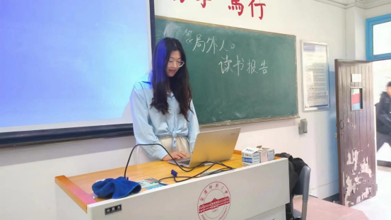在介绍完《局外人》的创作背景后,同学们各自分享了自己的阅读体会并对默尔索之死展开了热烈的讨论。陶卓菁同学认为当将个体生命被放置于客观历史之外,个体生命就会成为赤裸的例外状态。吴艳红同学提到默尔索之死是整个社会对游离于世俗规则与道德评判标准之外之人的绞杀。田珂瑜同学对社会意识形态对异己者的审判提出了见解。凌玉同学从存在主义角度指出了司法审判之荒谬与人在命运面前的惨败。