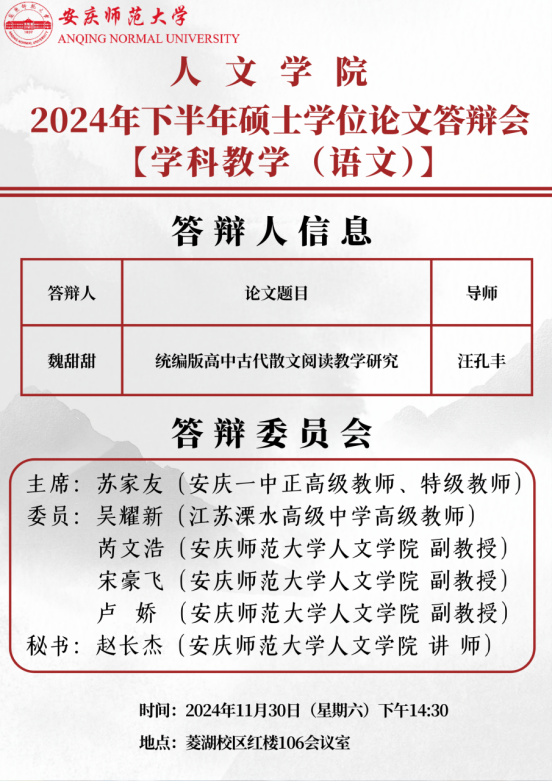 伟德国际1949始于英国2024年下半年硕士学位论文答辩会【学科教学(语文)】