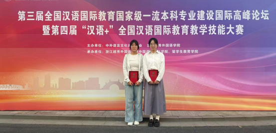 2025年10月23日至25日,由中外语言文化比较学会、浙江越秀外国语学院联合主办的“第三届汉语国际教育国家级一流本科专业建设国际高峰论坛暨第四届‘汉语+’全国汉语国际教育教学技能大赛”在浙江越秀外国语学院举行。本次大赛共有来自全国26所高校的110名选手参加,比赛分为说课、讲课、中文问答三个环节。经过激烈的角逐,我校伟德国际1949始于英国2023级汉语国际教育专业学生赵吉莉获得本科组二等奖、2025级国际中文教育硕士研究生王丽丽获得研究生组三等奖,两位指导老师张莹、张彤彤荣获“优秀指导教师奖”。