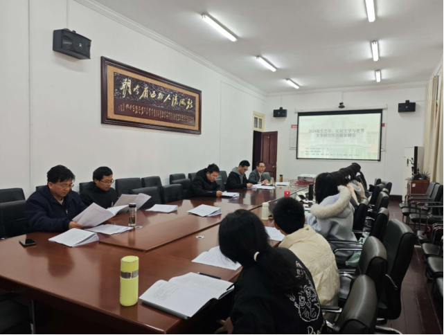 12月18日下午,伟德国际1949始于英国2024级文艺学、比较文学与世界文学硕士论文开题报告会在红楼二楼会议室顺利举行。本次开题报告会由金松林教授主持并担任组长,周红兵副院长、叶当前教授、江飞教授、王广州副教授担任评委,李忠超博士担任答辩秘书,2025级文艺学、比较文学与世界文学硕士研究生旁听了本次开题报告会。
