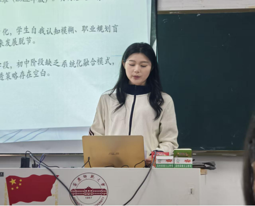 本次汇报分主讲人汇报,与会学生评议,教师指导三个环节。沙龙伊始,三位主讲人依次展开汇报:王艳和刘欣雨以《初中语文教学渗透生涯教育研究》为主题,聚焦初中语文与生涯教育的系统化融合模式的缺失,围绕融合基础、融合优势与实践策略两大部分,提出三大可落地的实践策略;陈兴馨以《高中语文古典诗歌教学现状及对策研究——以恩施市第三高级中学为例》为题,梳理恩施市第三高级中学古典诗歌教学现状,根据实际数据提炼“教”与“学”分别存在的问题,并提出与其相对应的实践策略。