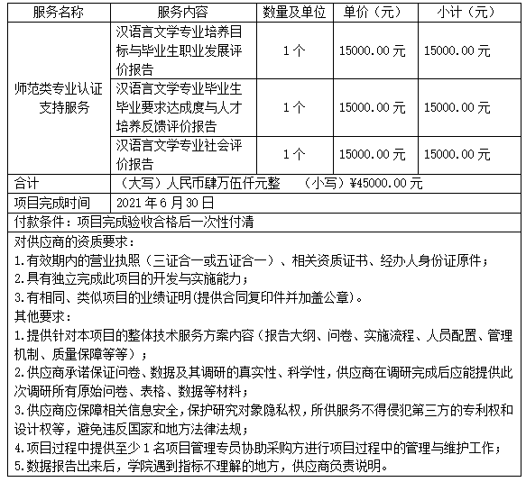 项目名称:汉语言文学专业认证支持服务