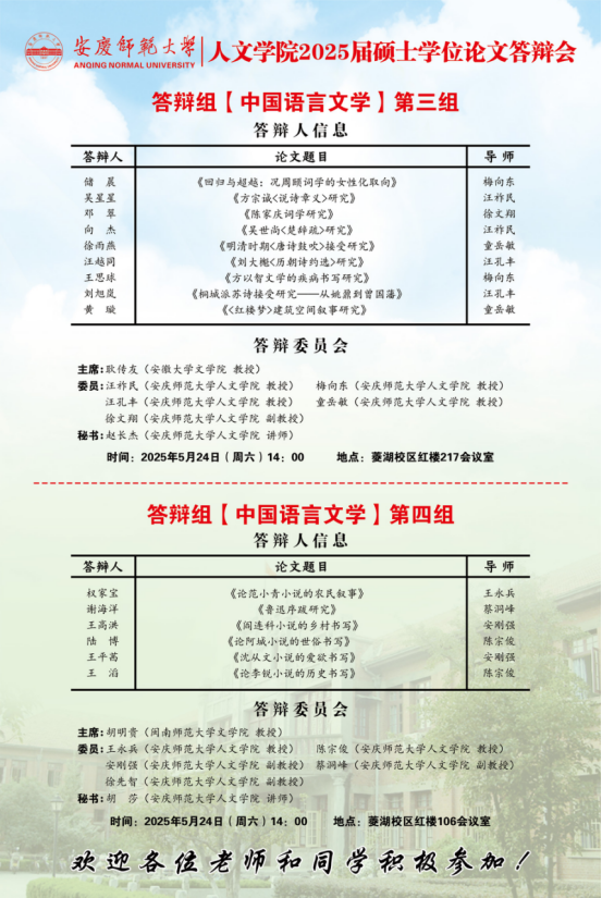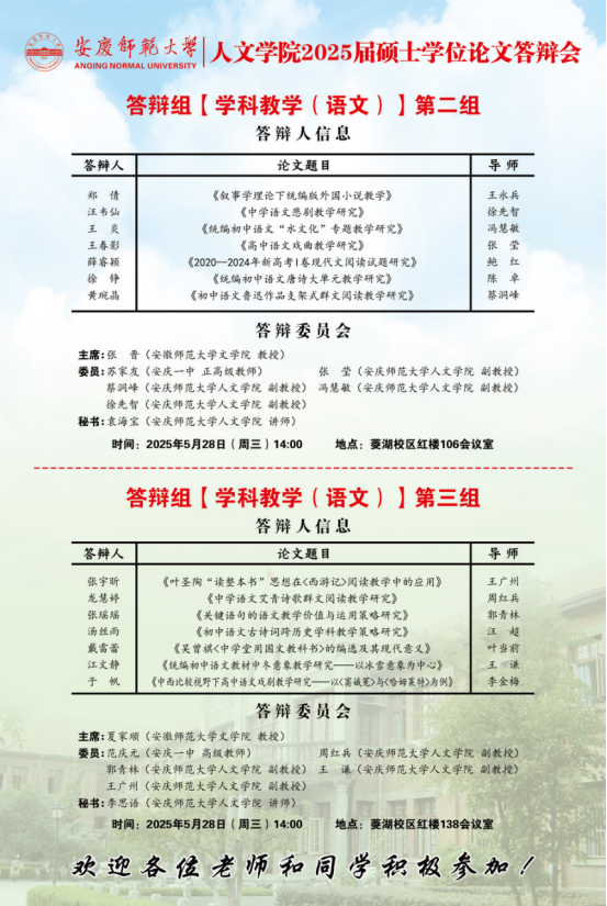 伟德国际1949始于英国2025年上半年硕士研究生学位论文答辩工作安排【中国语言文学组、中国史组、学科教学(语文)组、学科教学(历史)组】