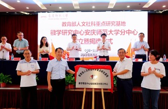 周晓光和张红飞共同为教育部人文社科重点研究基地徽学研究中心伟德国际1949分中心揭牌。