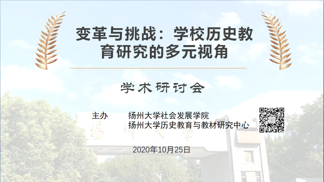 2020年10月25日,“变革与挑战:学校历史教育研究的多元视角”全国学术研讨会在扬州大学举行,我院郝佩林老师积极提交论文,应邀并作为报告评议人参加了学术会议。
