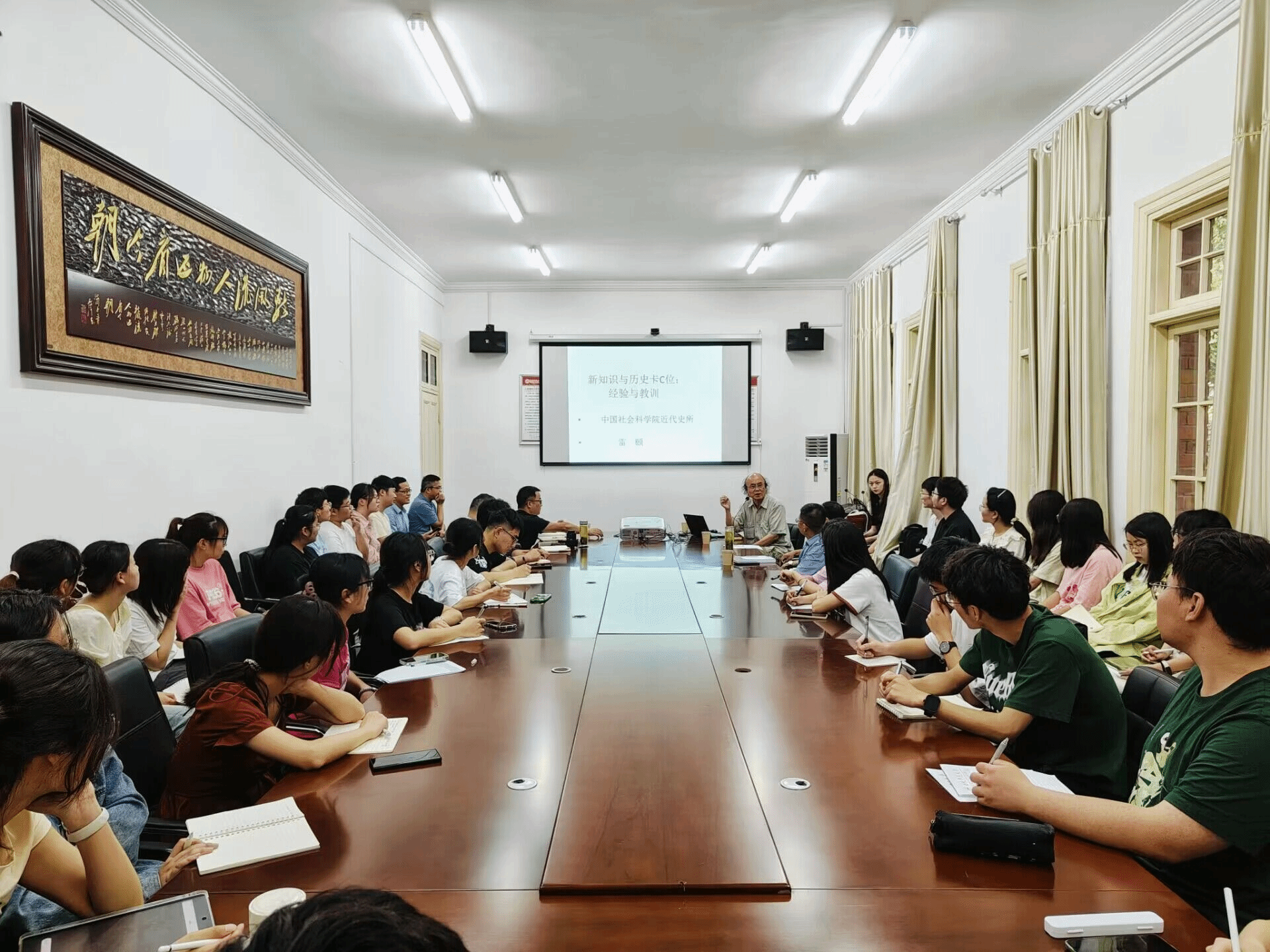 雷颐先生学贯中西,对中国历史文化怀有强烈的关切之情。讲座以近代中国因错失重要历史机遇而被西方和日本赶超为主线,将郑和下西洋之后实施海禁与哥伦布开启的大航海时代进行对比,分析当时中国对传统知识的固守以及接受新知的艰难,与西方和日本形成强烈反差。他以近代中国与日本两国的不同命运为例,将新知的接受与否同国运兴衰联系起来。他在讲座中既回顾历史,又关怀现实,提醒青年学生要努力接受新知,把握住世界第三次信息革命浪潮。讲座结束后,雷先生同与会师生就中国古代社会性质、新旧知识的冲突与挑战等问题进行了深入交流,现场气氛热烈。