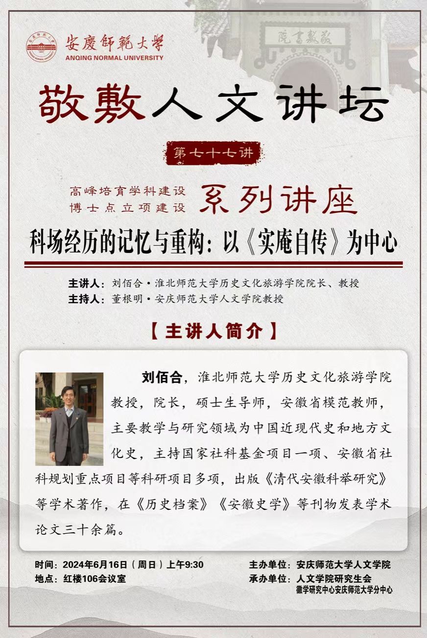【敬敷人文讲坛(77)】科场经历的记忆与重构:以《实庵自传》为中心