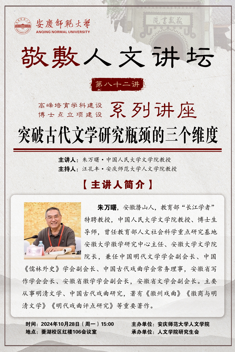 【敬敷人文讲坛(82)】突破古代文学研究瓶颈的三个维度