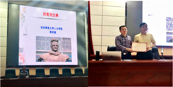 5月14日下午,应铜陵学院文学与艺术传媒学院邀请,我院中国现当代文学专业硕士研究生导师陈宗俊教授赴该院做了一场题为《风骨刘文典》的学术讲学。该院汉语言文学、中文师范两个专业的全体学生和部分教师共100余人聆听了讲座。该院院长陈昌文教授主持讲座,并向陈宗俊教授颁发了客座教授聘书。