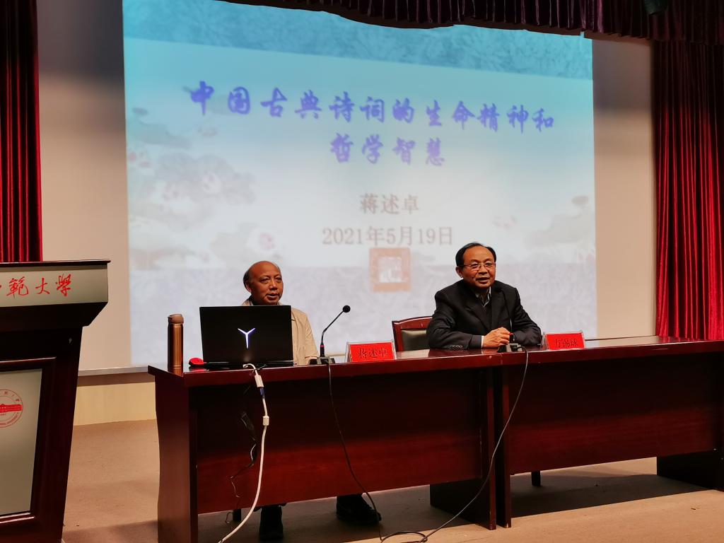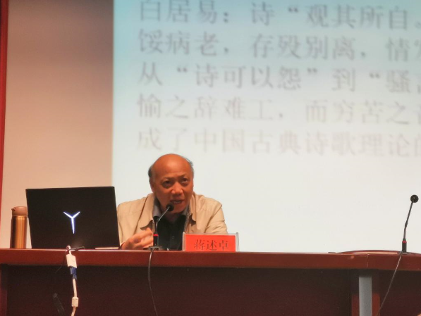 5月19日下午,暨南大学中文系二级教授、博士生导师蒋述卓教授在菱湖校区图书馆报告厅做了题为“中国古典诗歌的生命精神和哲学智慧”的学术讲座。讲座由伟德国际1949始于英国方锡球教授主持,汉语言文学专业本科生、研究生近200人参加了本次报告会。