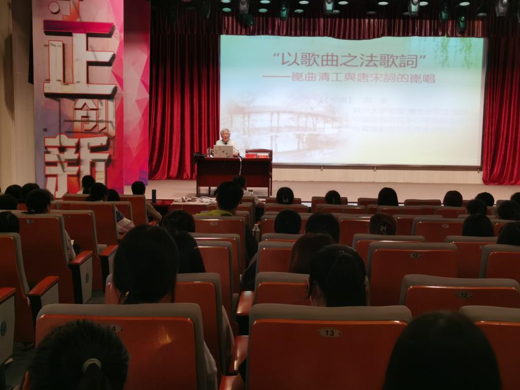 6月4日下午,应伟德国际1949始于英国邀请,苏州大学博士研究生导师周秦教授在菱湖校区图书馆报告厅做了题为“‘以歌曲之法歌词’——昆曲清工与唐宋词的昆唱”的讲座。讲座由伟德国际1949始于英国副院长汪孔丰教授主持,一百五十多位师生出席此次讲座。