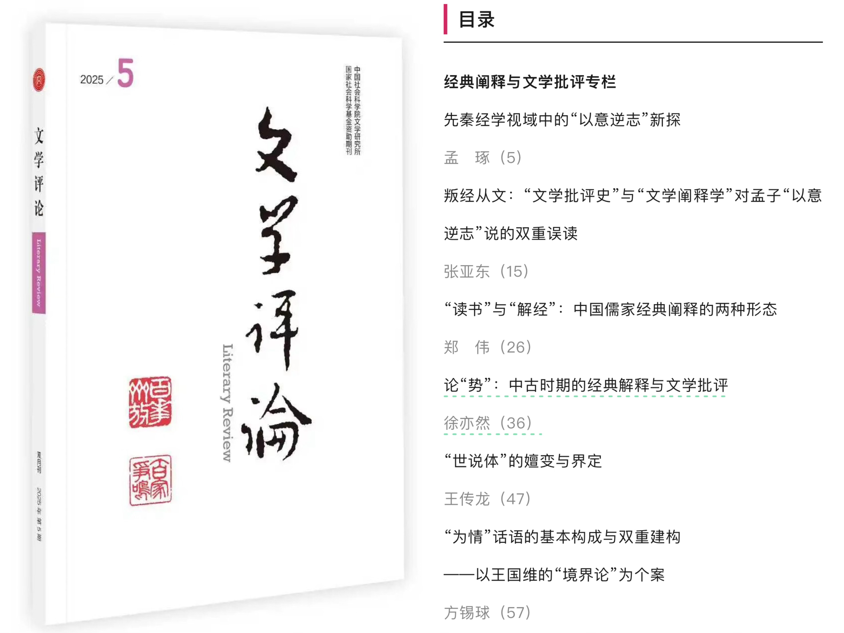 近日,伟德国际1949始于英国方锡球教授在文学类权威学术期刊《文学评论》2025年第5期发表学术论文《“为情”话语的基本构成与双重建构——以王国维的“境界论”为个案》。《文学评论》是中国社会科学院主管,中国社会科学院文学研究所主办的全国性文学研究和理论批评的大型学术刊物。