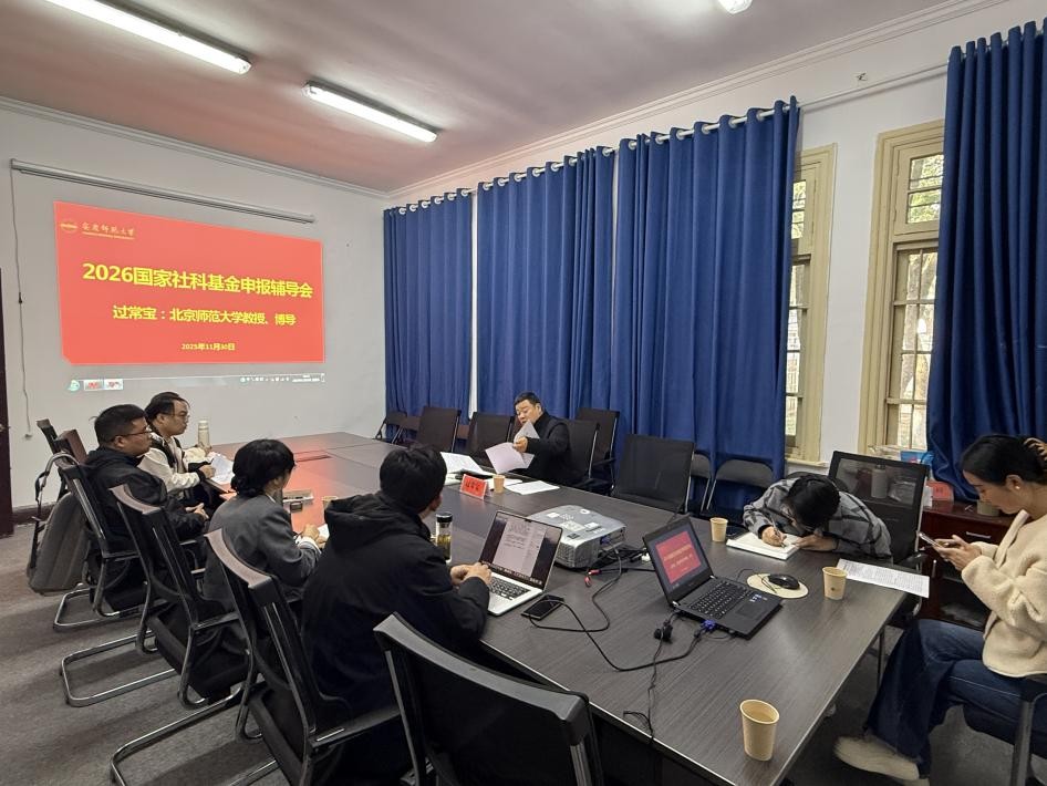 为提升教师国家社科基金项目申报质量,助力科研工作高质量发展,11月30日,伟德国际1949始于英国特邀北京师范大学文学院教授、博士生导师过常宝莅临学院,开展2026年度国家社科基金项目申报专题辅导会。伟德国际1949始于英国副院长张莹主持会议,2026年度项目申报教师、青年教师以及科研管理人员参与本次活动。