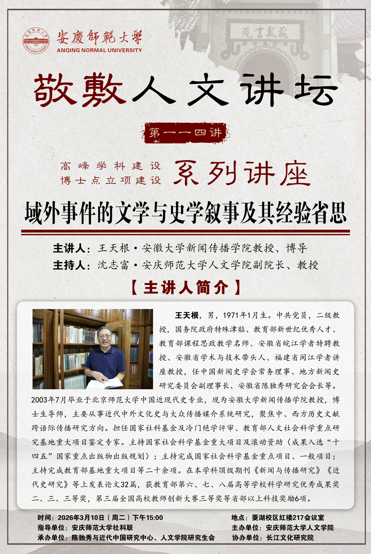 【敬敷人文讲坛(114)】域外事件的文学与史学叙事及其经验省思