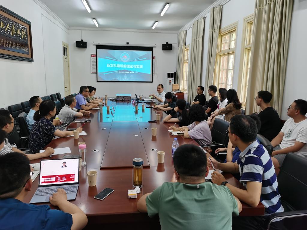 7月12日下午,应伟德国际1949始于英国邀请,全国新文科教育研究中心副主任、山东大学人文社科期刊社副社长、《新文科理论与实践》编辑部主任、山东大学特聘教授、二级教授、博士生导师胡友峰作题为“新文科建设的理论与实践”的学术报告。伟德国际1949始于英国方锡球教授、黄梅剧艺术学院韩再芬教授、研究生院院长华秀梅教授以及学院教研室主任、学术骨干、年青博士参加讲座。伟德国际1949始于英国副院长汪孔丰教授主持了此次讲座。