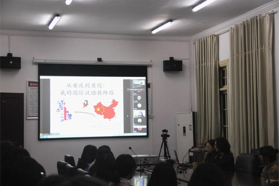 11月23日晚,敬敷人文讲坛第二十四讲在红楼二楼会议室顺利举行。英国伦敦珍妮·玛努埃尔英法双语学校(École Jeannine Manuel)汉语教师张晓涵应邀作了题为“从安庆到英国:我的国际汉语教师路”的线上讲座。讲座由汉语国际教育教研室主任张莹副教授主持,我院部分硕士研究生和本科生参加了此次活动。