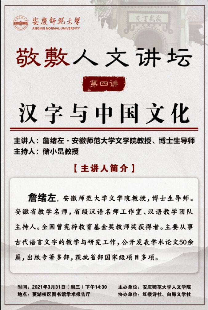 讲座预告:【敬敷人文讲坛④】汉字与中国文化
