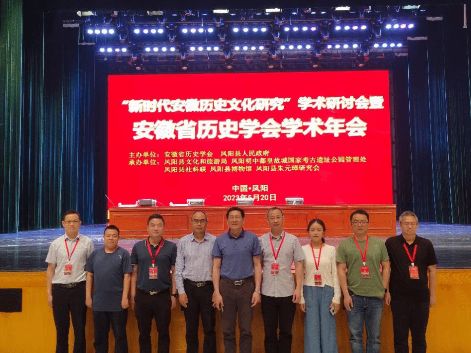 5月19日至21日,“新时代安徽历史文化研究”学术研讨会暨安徽省历史学会2023年学术年会在安徽凤阳县召开。本次年会由安徽省历史学会、凤阳县人民政府主办,凤阳县文化旅游局、凤阳明中都皇故城国家考古遗址公园管理处、凤阳县社科联、凤阳县博物馆、凤阳县朱元璋研究会承办。省社科联党组书记、常务副主席李兵,秘书长、一级调研员韩修良,省历史学会会长李琳琦,凤阳副县长张艳,南京工业大学郭华瑜教授,南京大学夏维中教授等出席会议。来自省内外十余所高校、科研院所、出版单位以及凤阳本地学者160余人参会,其中我院近十位教师应邀与会。