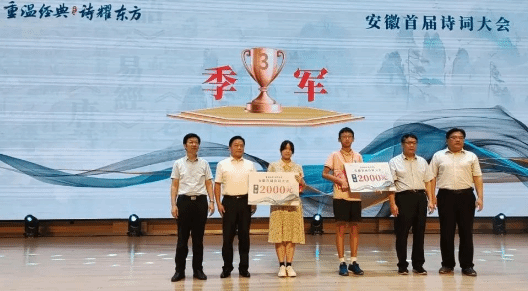 本次大会由安徽省诗词学会、中共肥东县委宣传部主办,中央电视台《中国诗词大会》学术总负责人及命题专家组组长李定广教授担任学术顾问。比赛分为初赛、复赛、半决赛、决赛四个环节,在必答、抢答、飞花令、接龙等形式中实行淘汰制。一场场精彩的对决,选手们充分展现出丰富的文学积累和深厚的诗词底蕴。比赛中,刘子禾同学沉稳应对、机智抢答,一路过关斩将,最终获得了季军的好成绩。