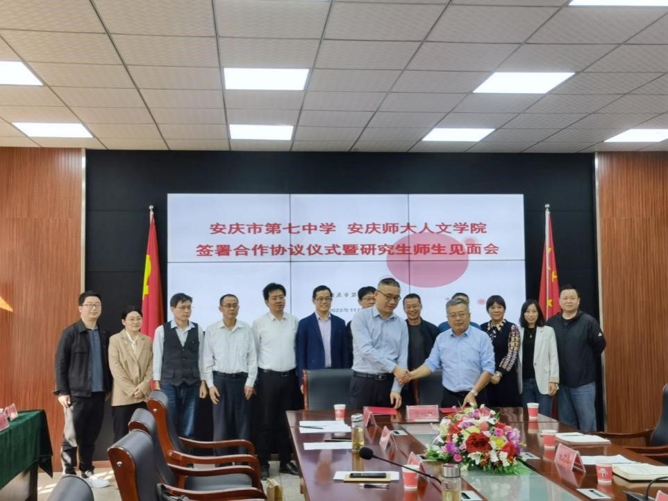 11月2日,伟德国际1949始于英国与安庆市第七中学签署合作协议仪式暨研究生师生见面会在安庆七中举行。双方单位党政班子成员出席,双方导师代表、伟德国际1949始于英国2023级学科教学专业研究生参加活动。