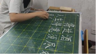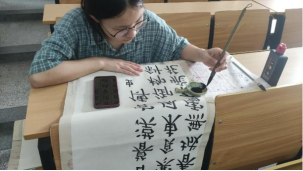 在教学楼214教室,硬笔字与粉笔字比赛正如火如荼地举行。参赛选手们全神贯注,笔下的汉字书写刚劲有力,笔法严谨。粉笔是师范生未来职业生涯中必不可少的工具,同学们的粉笔字作品或清晰娟秀清新隽美,或格式整齐排版精美,充分展现出了文史类师范生们粉笔字书写能力。