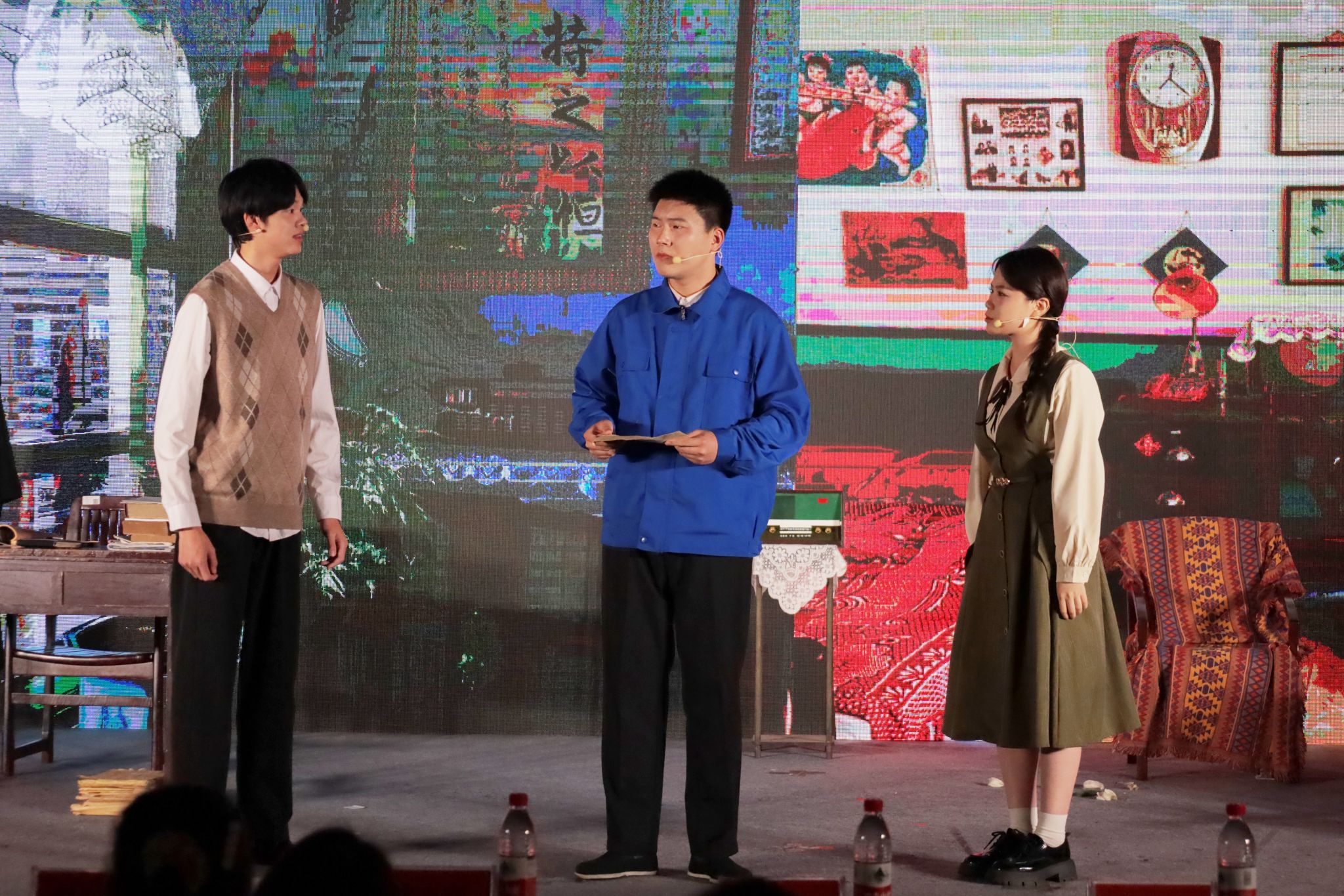 “一个人失去理想等于丧失灵魂,虽生犹死,为高尚理想献身的人,人虽死,而精神永存,虽死犹生。”汉语言文学专业2020(5)班的薛正阳扮演的赵长康一角,以铿锵有力的语气,将话剧《屋外有热流》推向了高潮。话剧通过讲述中国社会经历重大变革后,兄妹三人间的系列故事,反映了当时社会对于理想和信仰的追求,激励学子们坚持信念,在新时代勇敢追求理想。