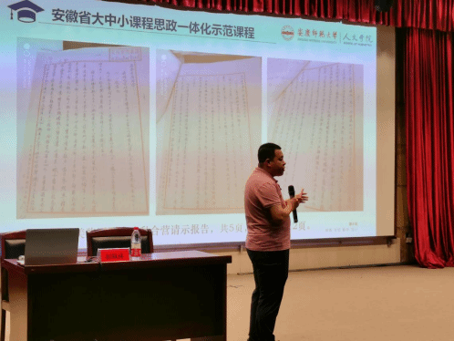 紧接着第二场呼应时下热点——大中小课程思政一体化问题。“安庆在哪里?”“你是安庆哪里人?”……随着一系列的发问,伟德国际1949始于英国讲师、硕士研究生导师郝佩林博士从档案史料的独特视角,以档案展示的形式作了《档案中的安庆新中国史图像》主题讲座,向七中师生们直观地呈现出安庆工商业社会主义改造的历史。