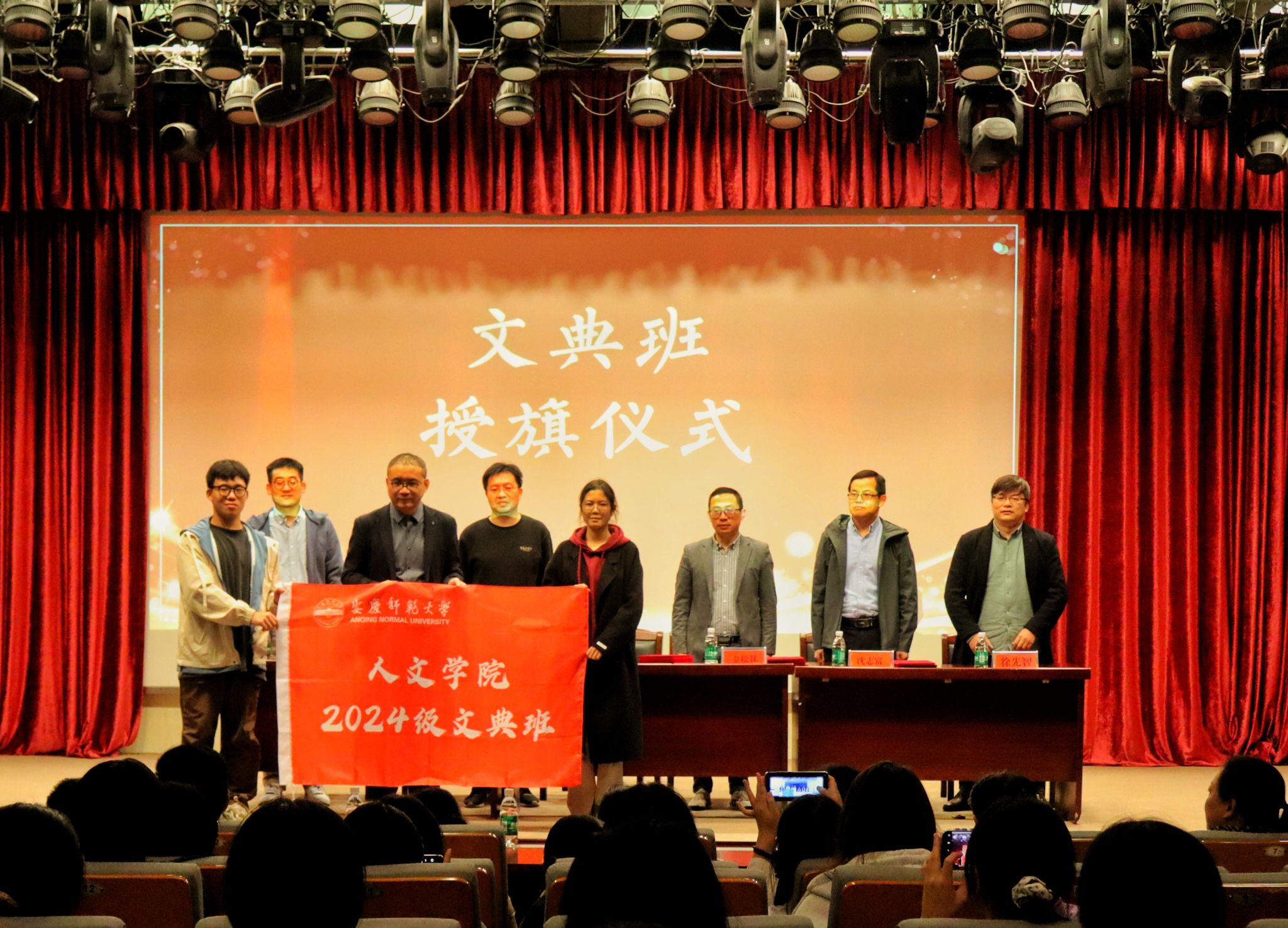 随后,伟德国际1949始于英国院长汪孔丰为2024级文典班授旗。随着授旗仪式的结束,会议进入第二阶段——本科生导师师生见面会。周红兵详细介绍了文典班的师资力量,以及导师工作细则。他表示每一位老师都拥有深厚的学术功底和丰富的教学经验,这些老师将会用自己的知识能力、人生经验为同学们打开汉语言文学专业的大门。介绍环节结束后,伟德国际1949始于英国领导向各位导师颁发聘书,24级文典班学生代向导师赠送纪念品。最后,24级文典班全体学生与导师合影留念。