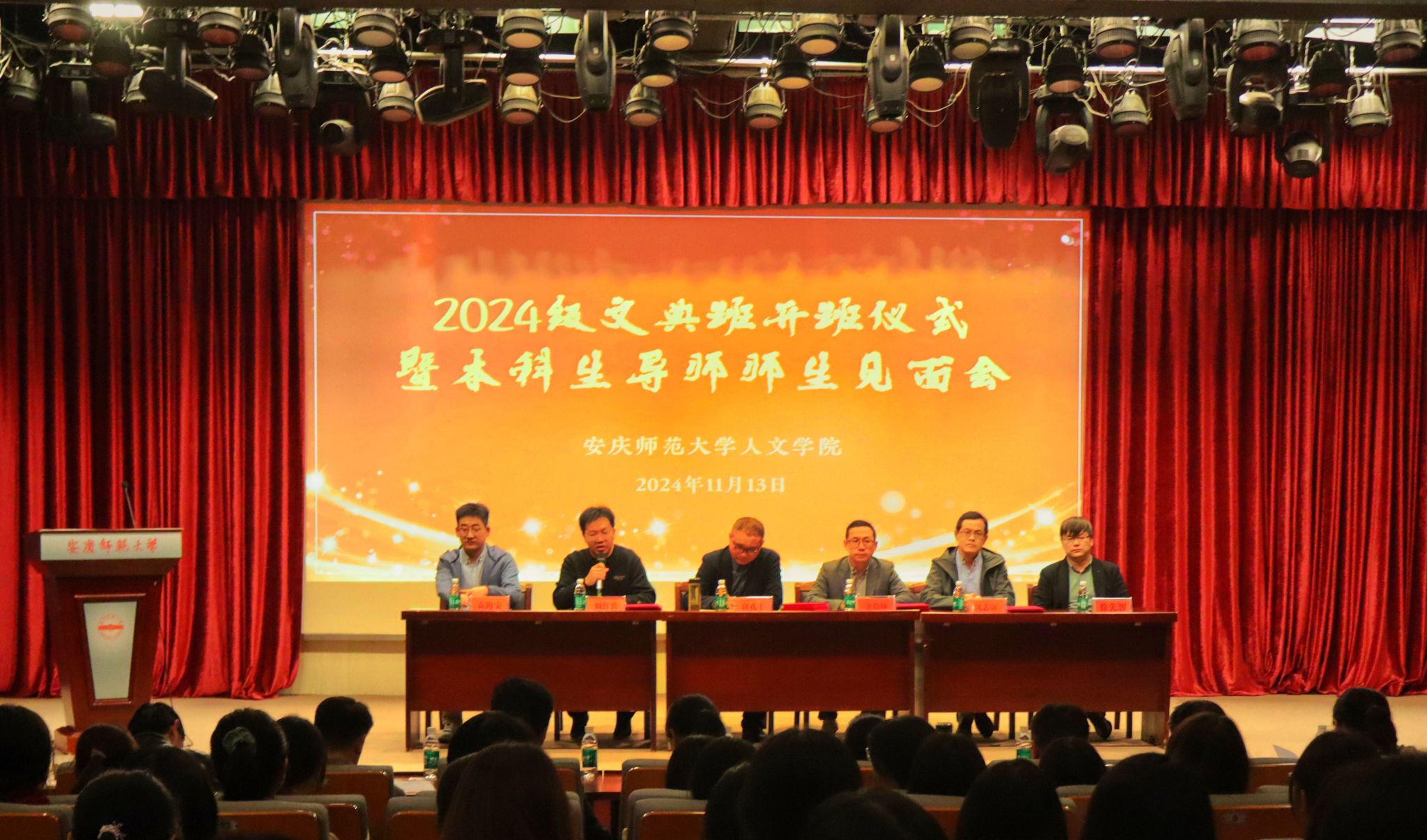11月13日下午,伟德国际1949始于英国在菱湖校区图书馆报告厅举行汉语言文学2024级“文典班”开班仪式暨本科生师生见面会。伟德国际1949始于英国党政领导、文典班导师、2023级和2024级文典班同学参加了会议,会议由伟德国际1949始于英国副院长周红兵主持。